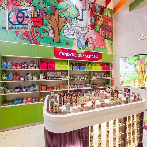 Espositore per cioccolato al dettaglio personalizzato Lolly Candy Store infissi pasticceria Interior Design vetrina Fashion Sweet Candy Shop
