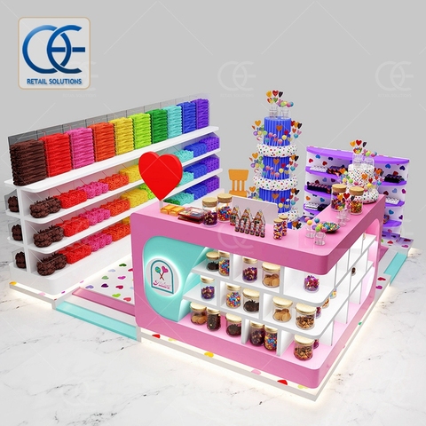 Centro commerciale colorato negozio di caramelle mobili negozio di cioccolato all'ingrosso montaggio Display in legno personalizzato decorazione negozio di dolci